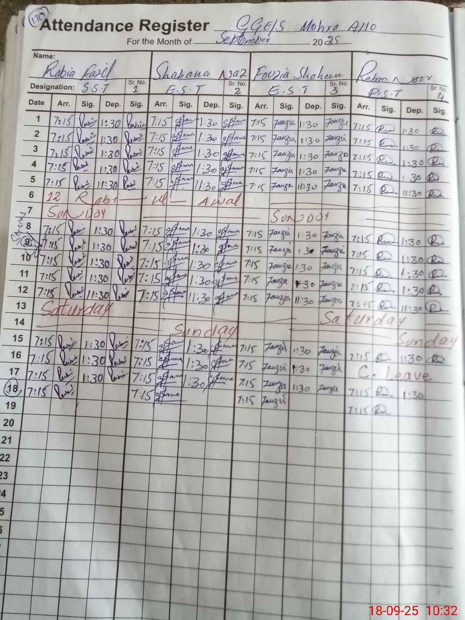 | CNIC | Full Name | Designation | R/C | Absence During Last Calender Month |