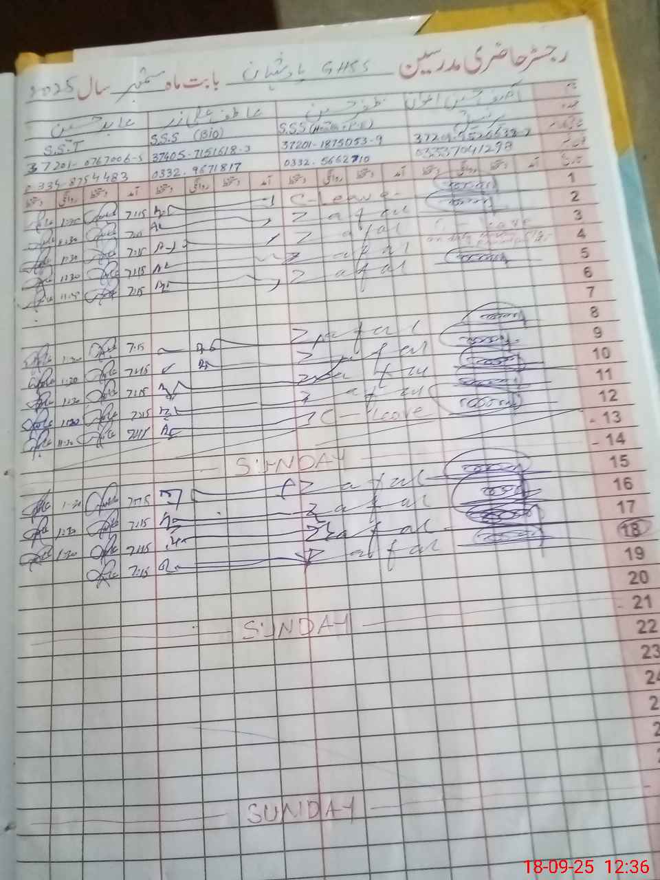 | CNIC | Full Name | Designation | R/C | Absence during last cal. month |