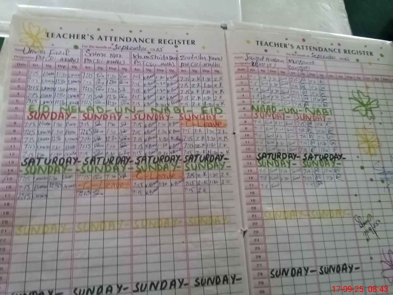| CNIC | Full Name | Designation | R/C | Absence During Last Calender Month |