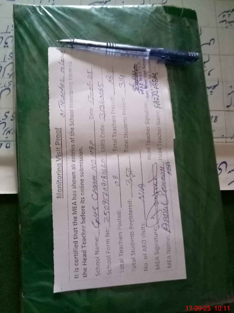 | EMIS Code: 31340065 | Name of School: GHS CHAK NO 119-P | |||
