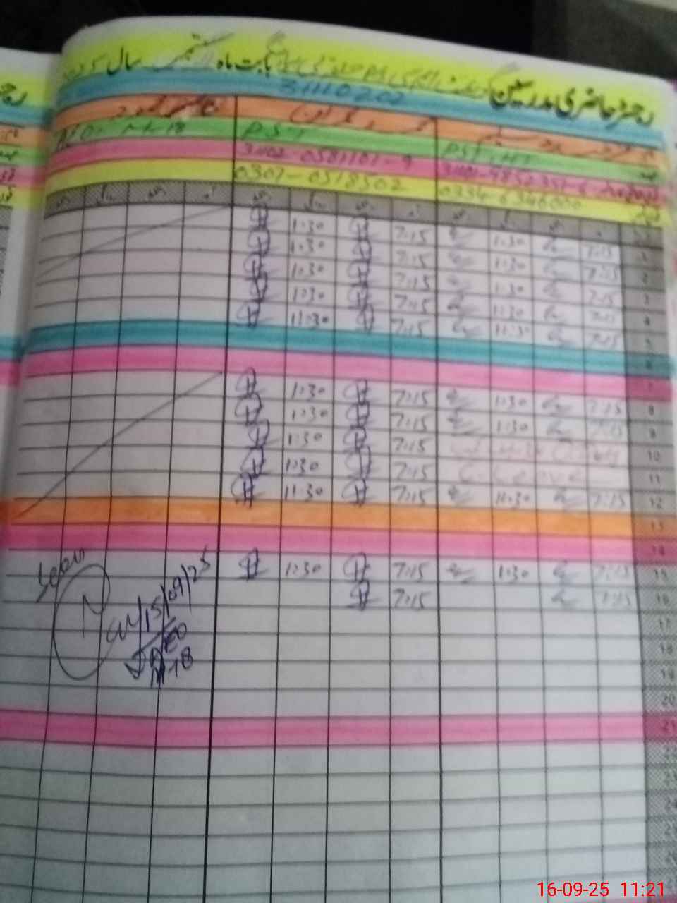 | CNIC | Full Name | Designation | R/C | Absence during last cal. month |