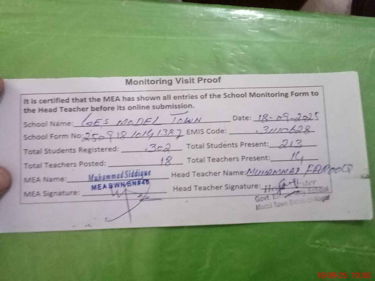 | EMIS Code: 31110628 | Name of School: GES MODEL TOWN | |||