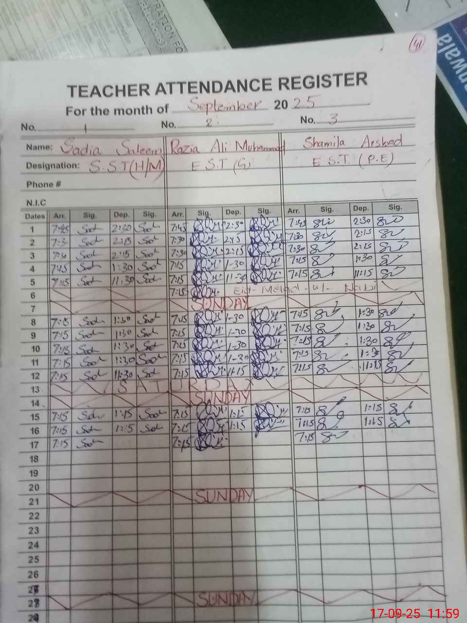 | Name: SA**** SA**** Designation: (School Headmaster's/Headmistress's) S.S.T.(ARTS) Phone/Cell Number: 03**** |