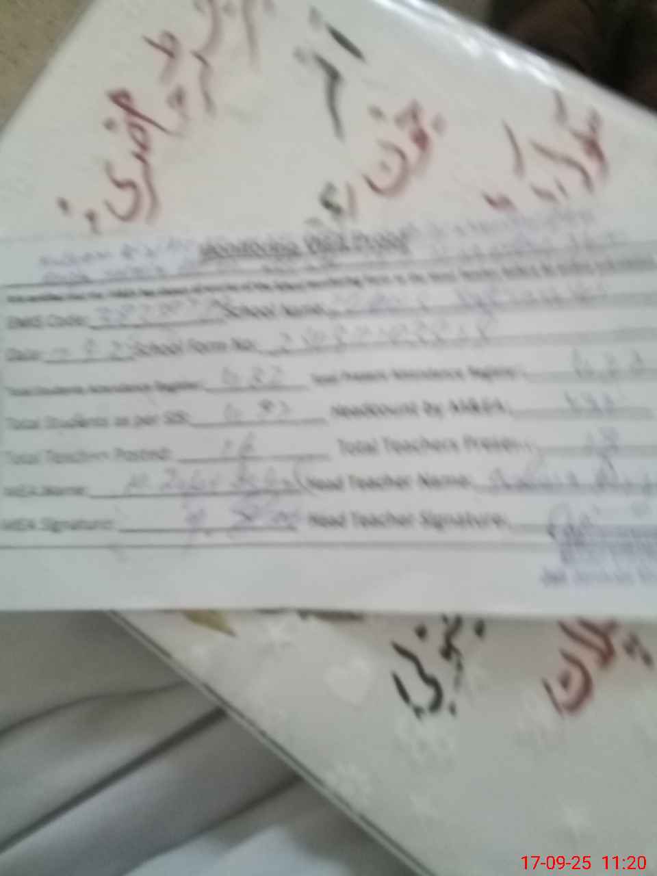 | Total no. of Classrooms: 15 No. of Classrooms Used for Teaching: 15 No. of Classrooms Storing Old Furniture, FTBs, etc: 0Comments if Any: Kalsoom bibi pst on MTL wef 15 8 2025 but no online show absent Foyzia Yasmin pst on MTL wef 18 8 2025 but no online show absent |
