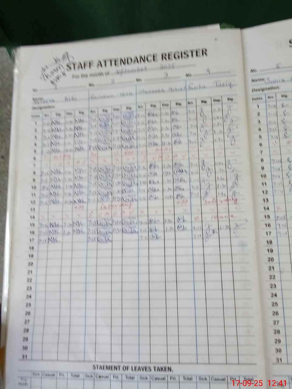 | Leave | Duty | Absent | Maternity | Medical | Ex- Pak |