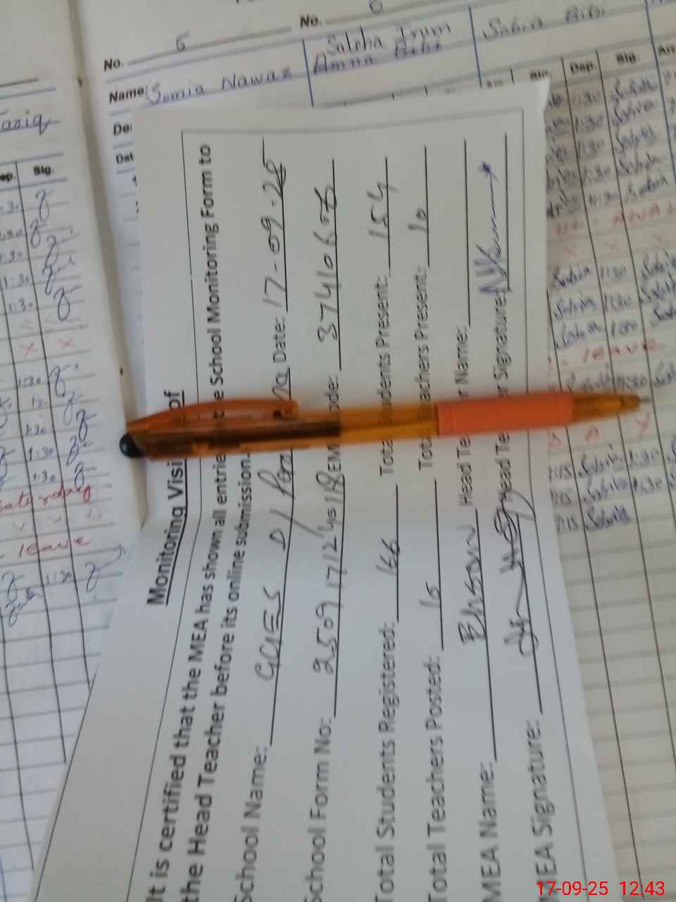 | Attendance Register | Head Teacher | MEA with School | Visit Proof |