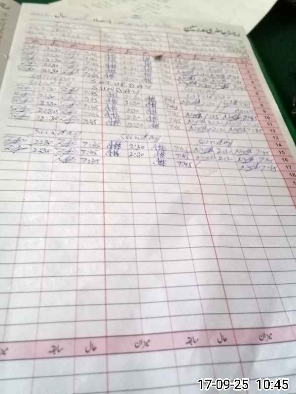 | CNIC | Full Name | Designation | R/C | Absence During Last Calender Month |