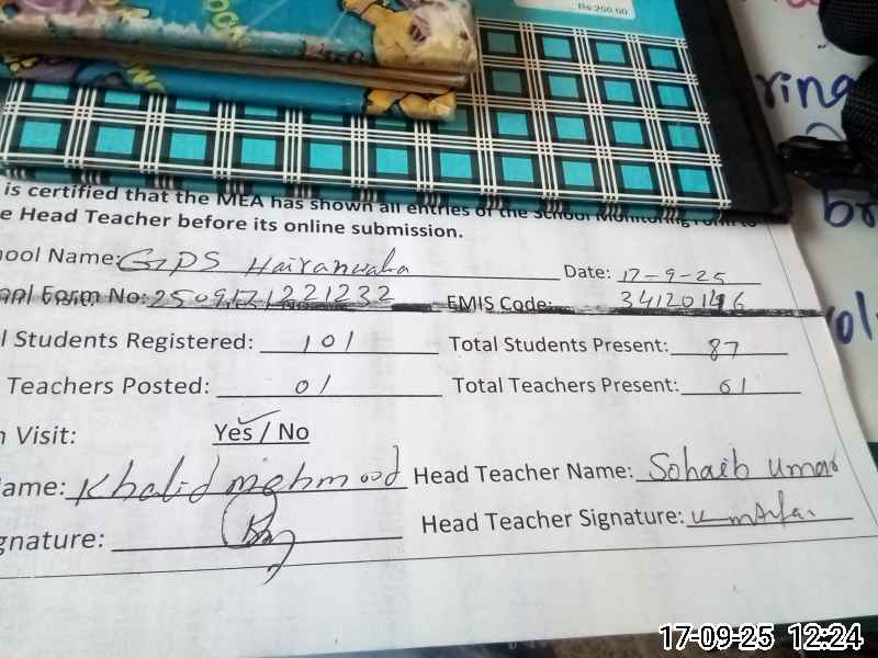 | EMIS Code: 34120146 | Name of School: GPS HARRIAN WALA KHURID | |||