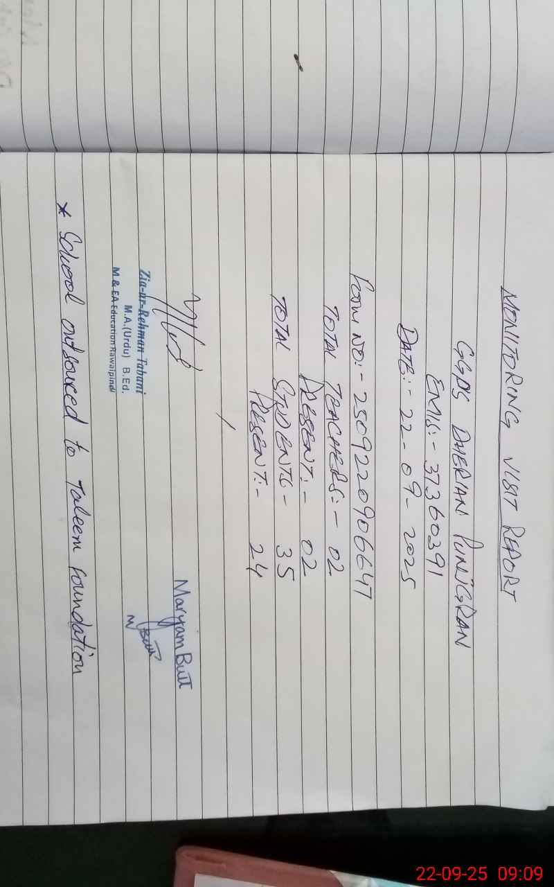 | Remarks (Use Separate Page if Required): School out sourced to Taleem Foundation | |||||