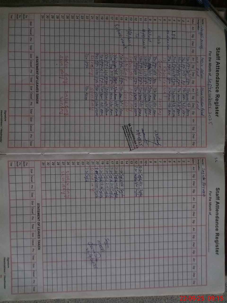 | Monitoring Date: 22-09-2025 | Start Time: 22-09-2025 08:43 AM | End Time: 22-09-2025 09:17 AM | Name of MEA: W-**** Al**** | |