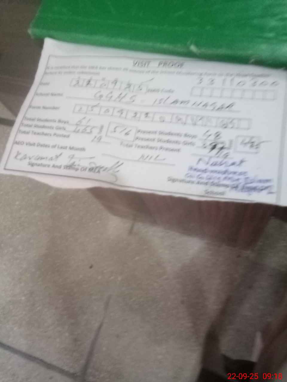 | Attendance Register | Head Teacher | MEA with School | Visit Proof |