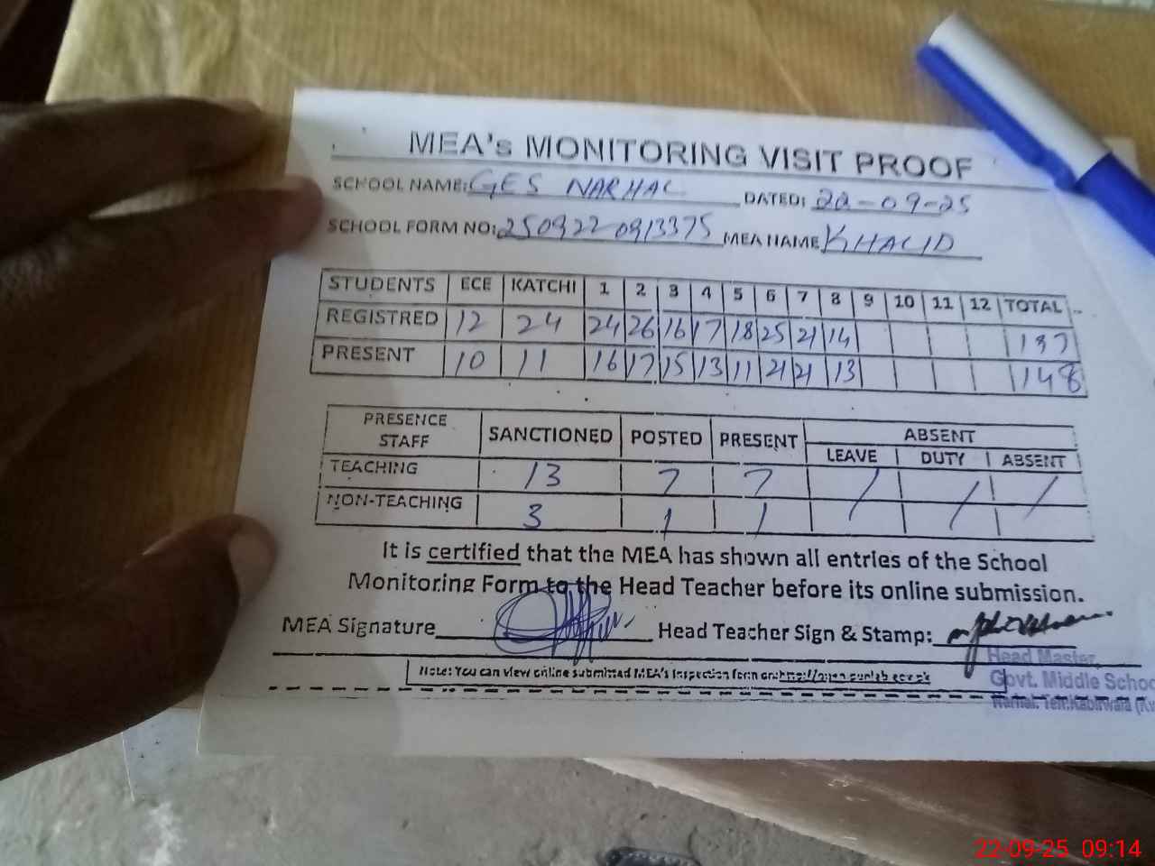 | EMIS Code: 36410047 | Name of School: GES NARHAL, KABIRWALA | |||