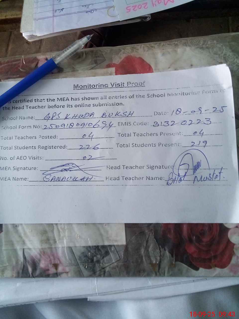 | EMIS Code: 31320223 | Name of School: GPS KHUDA BUKSH JOIYA | |||