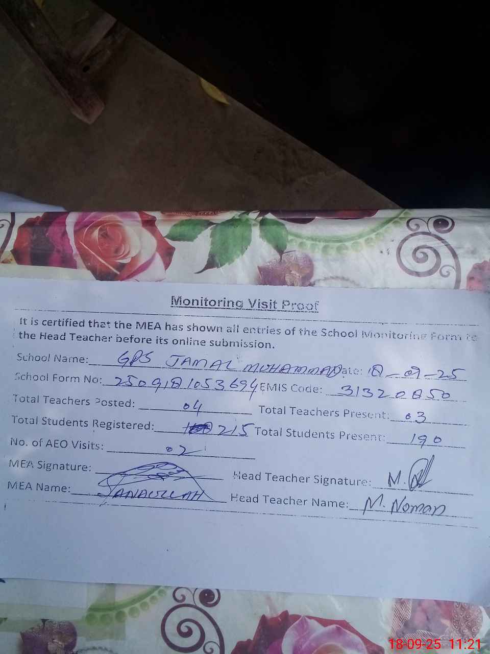 | EMIS Code: 31320850 | Name of School: GPS JAMAL MUHAMMAD NAICH | |||