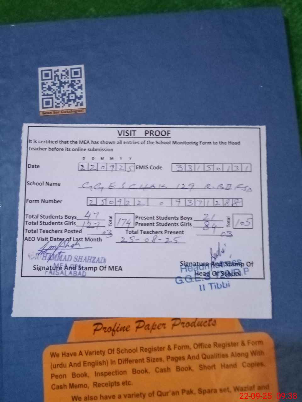 | EMIS Code: 33150131 | Name of School: GGES CHAK 129 RB II | |||