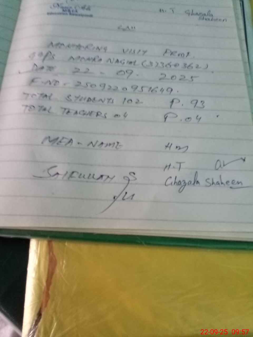 | Attendance Register | Head Teacher | MEA with School | Visit Proof |