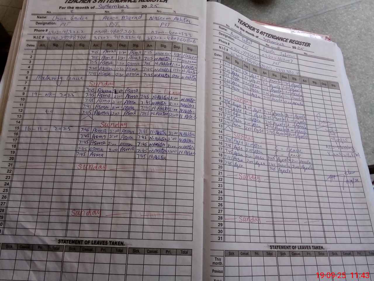 | 35**** | Uz**** Sa**** | PST | Regular | 0 | 0 | 0 | 0 | 0 | 0 | 0 | 0 | 0 | Maternity |
