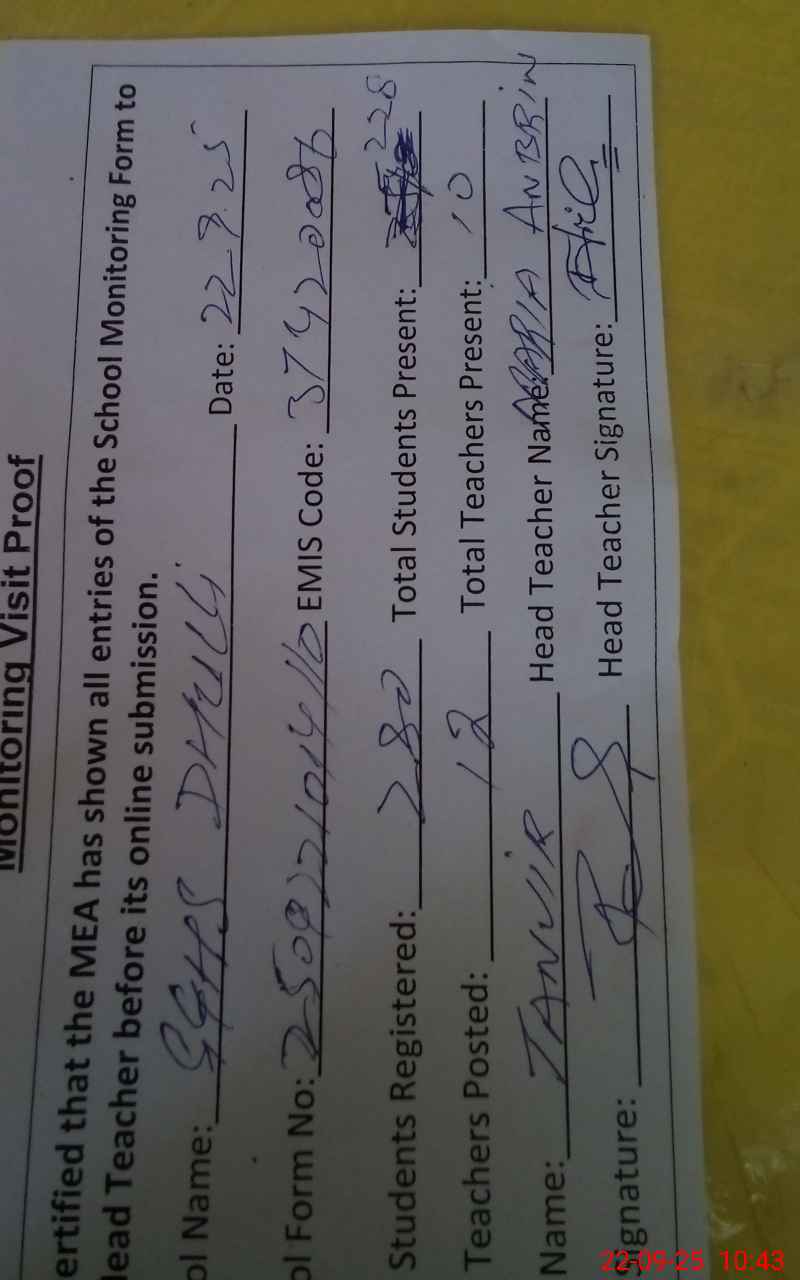 | Name: Ma**** An**** Designation: (School Headmaster's/Headmistress's) SST Phone/Cell Number: 03**** |