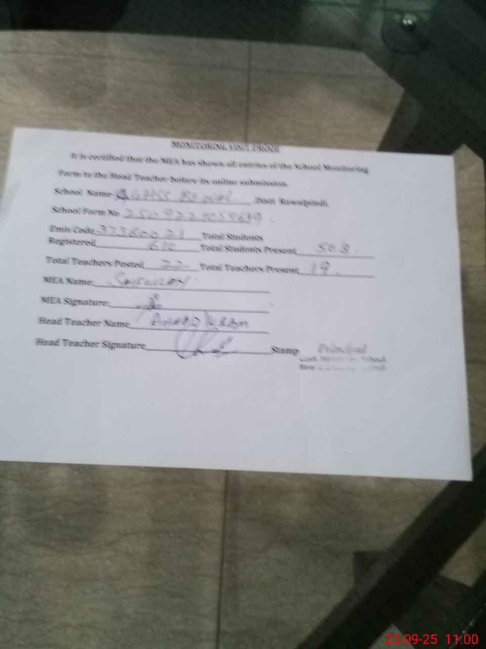 | Name: Ah**** Ik**** Designation: (School Headmaster's/Headmistress's) Principal Phone/Cell Number: 03**** |