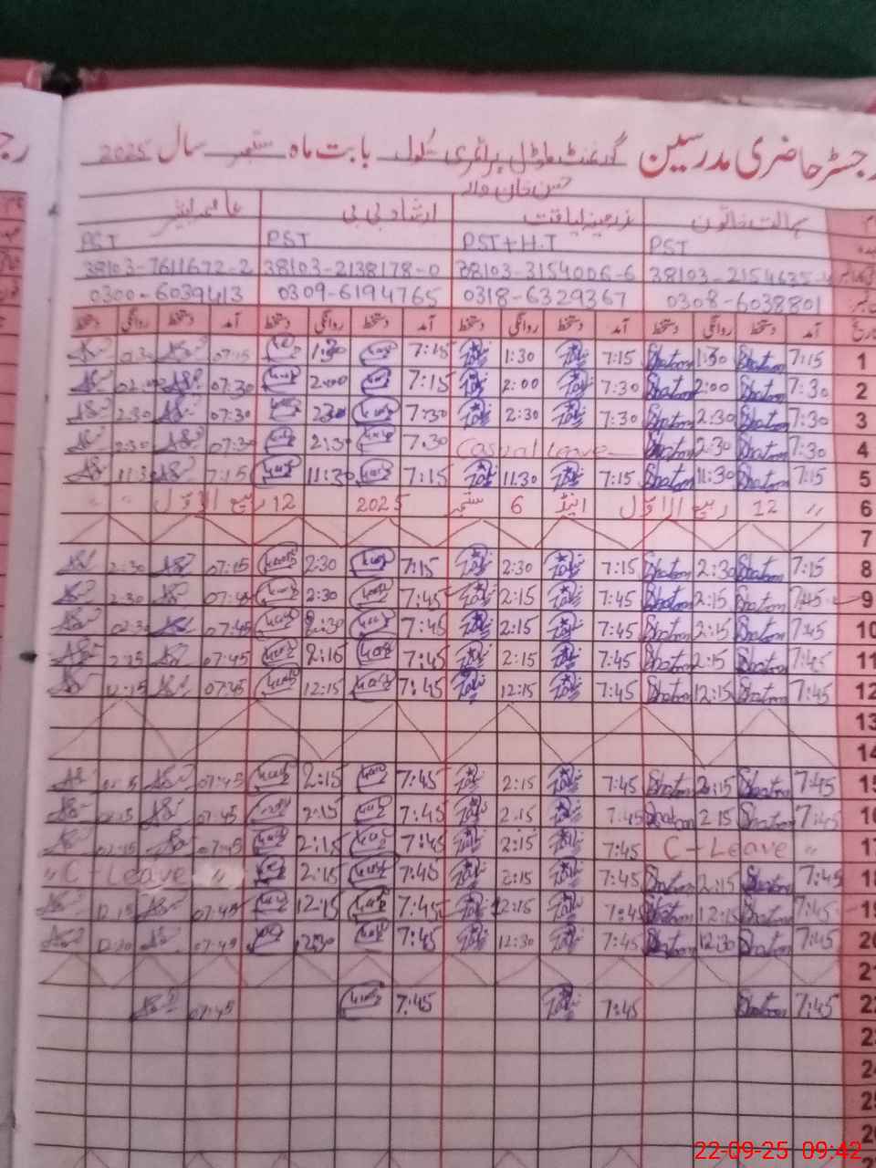 | CNIC | Full Name | Designation | R/C | Absence during last cal. month |
