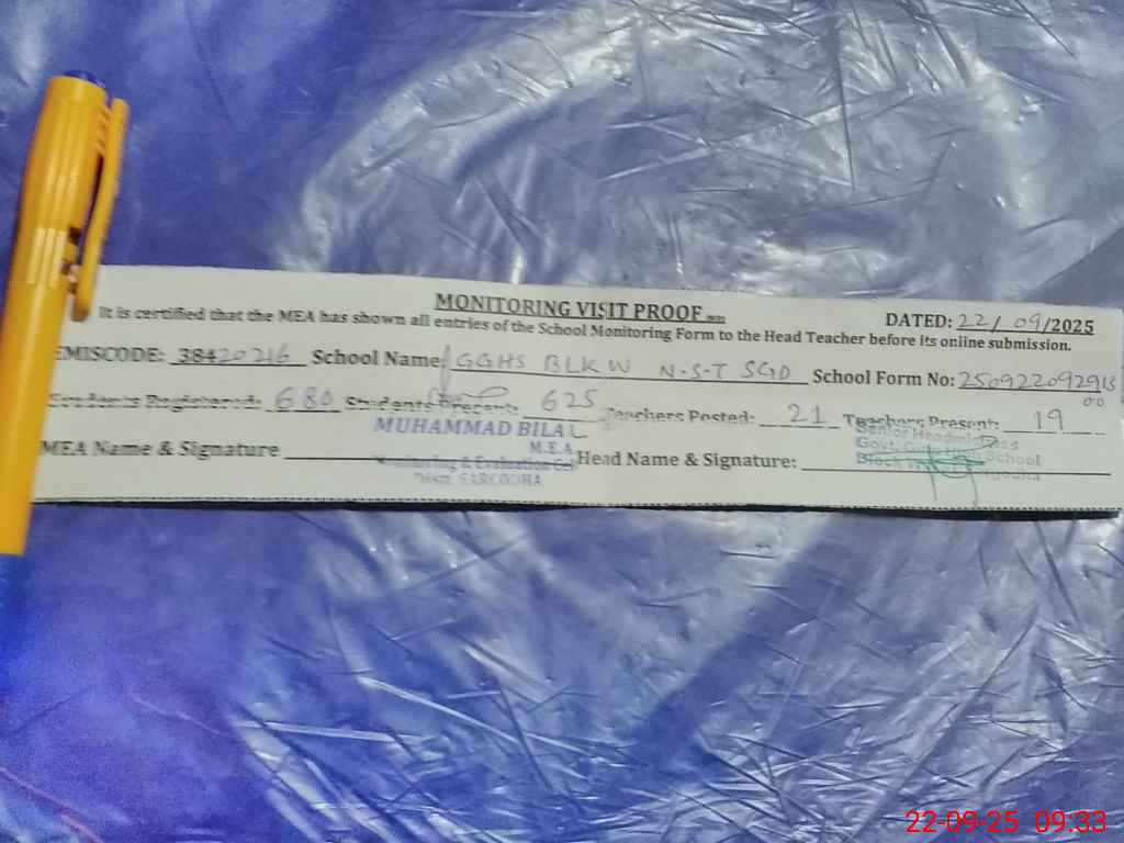 | EMIS Code: 38420216 | Name of School: GGHS BLOCK-W NEW SATTELITE TOWN SARGODHA | |||