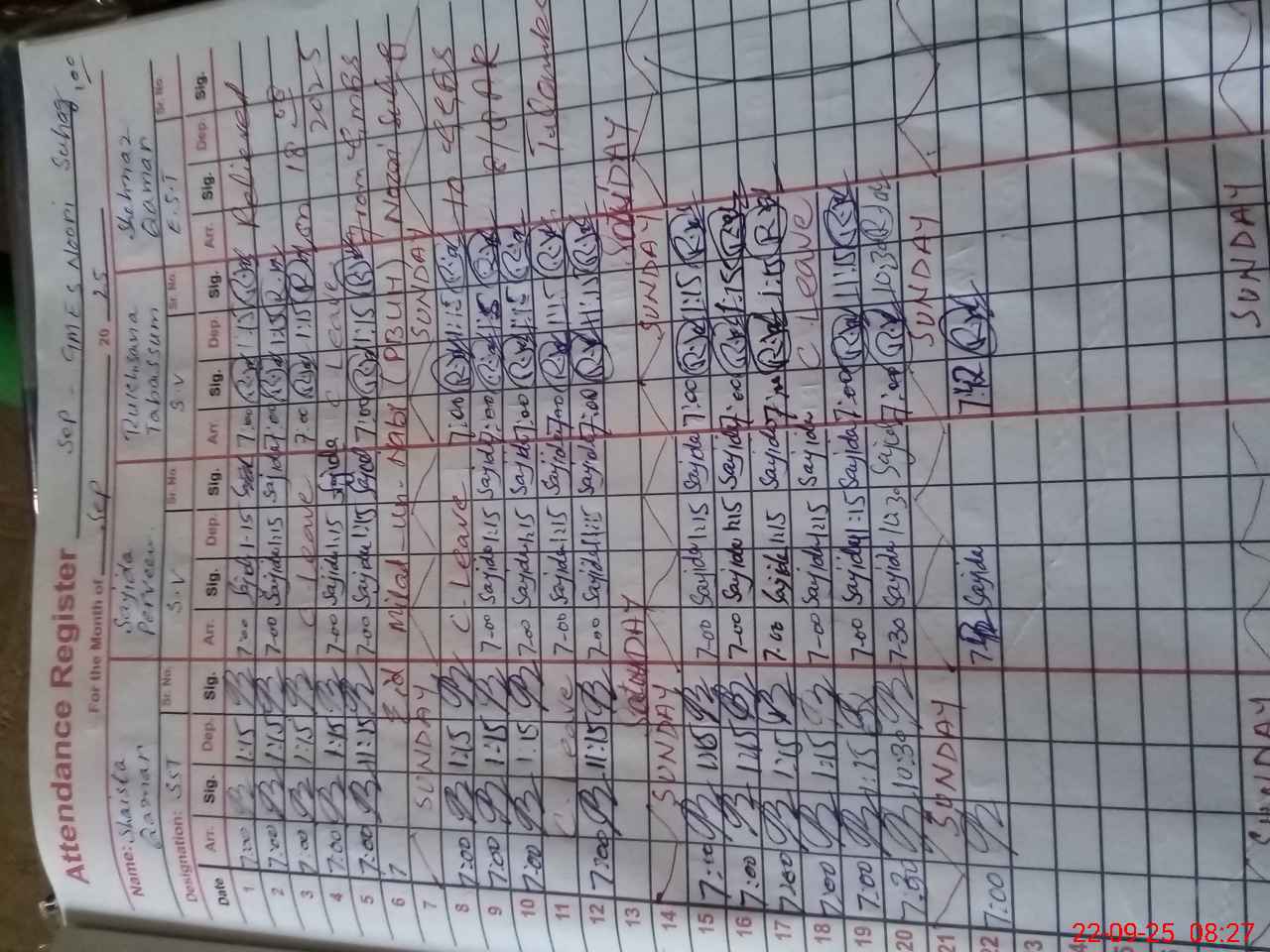 | 36**** | Za**** Pa**** | 1 | 0 | 0 | 0 | 0 | 0 | 0 | 0 | 0 | 0 | Absent (Un-Authorized) | |