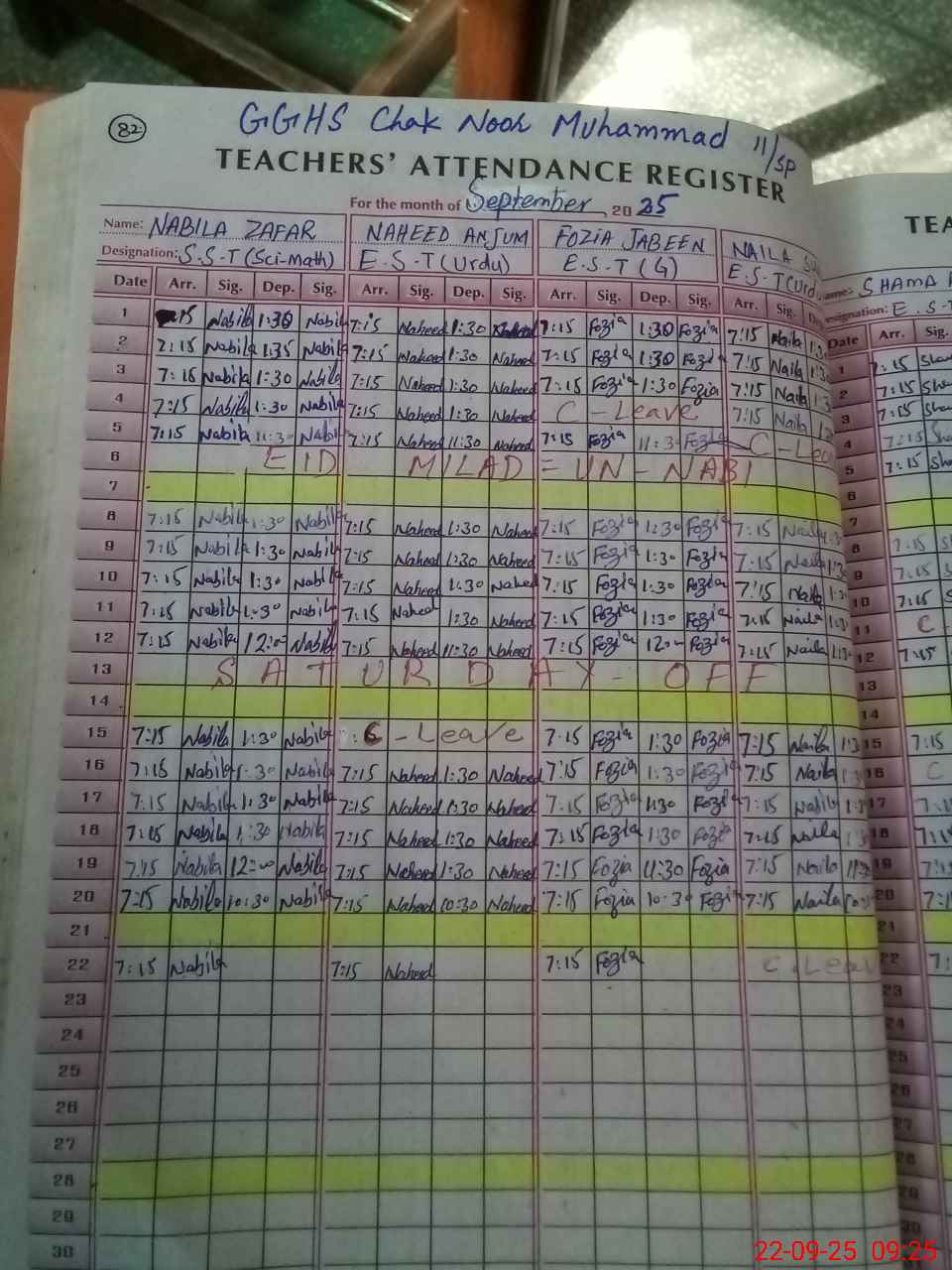 | EMIS Code: 39210356 | Name of School: GGHS CHAK NOOR MUHAMMAD 11/SP | |||