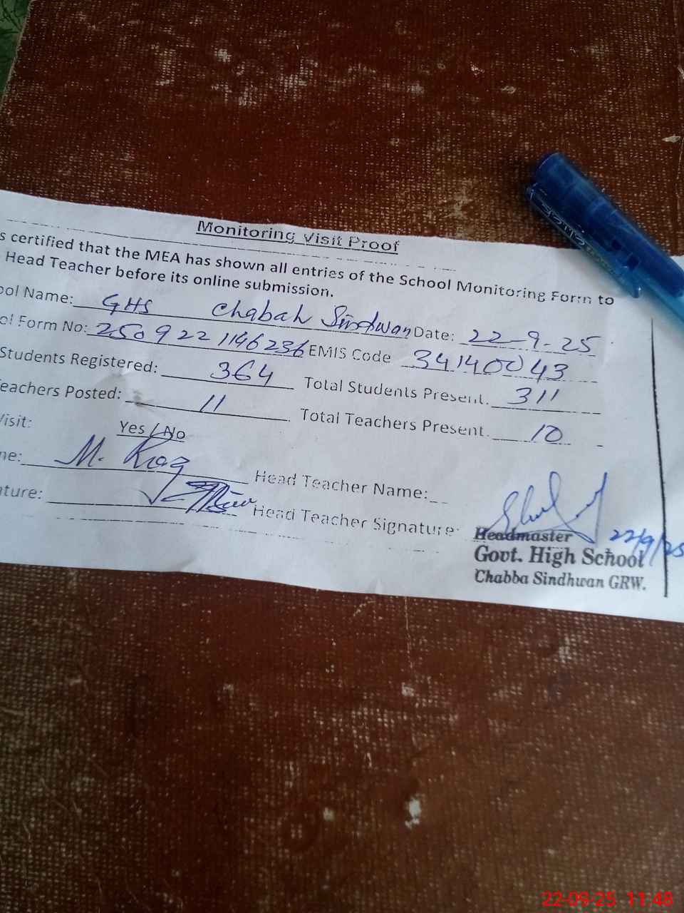 | EMIS Code: 34140043 | Name of School: GHS CHABBA SINDWAN | |||