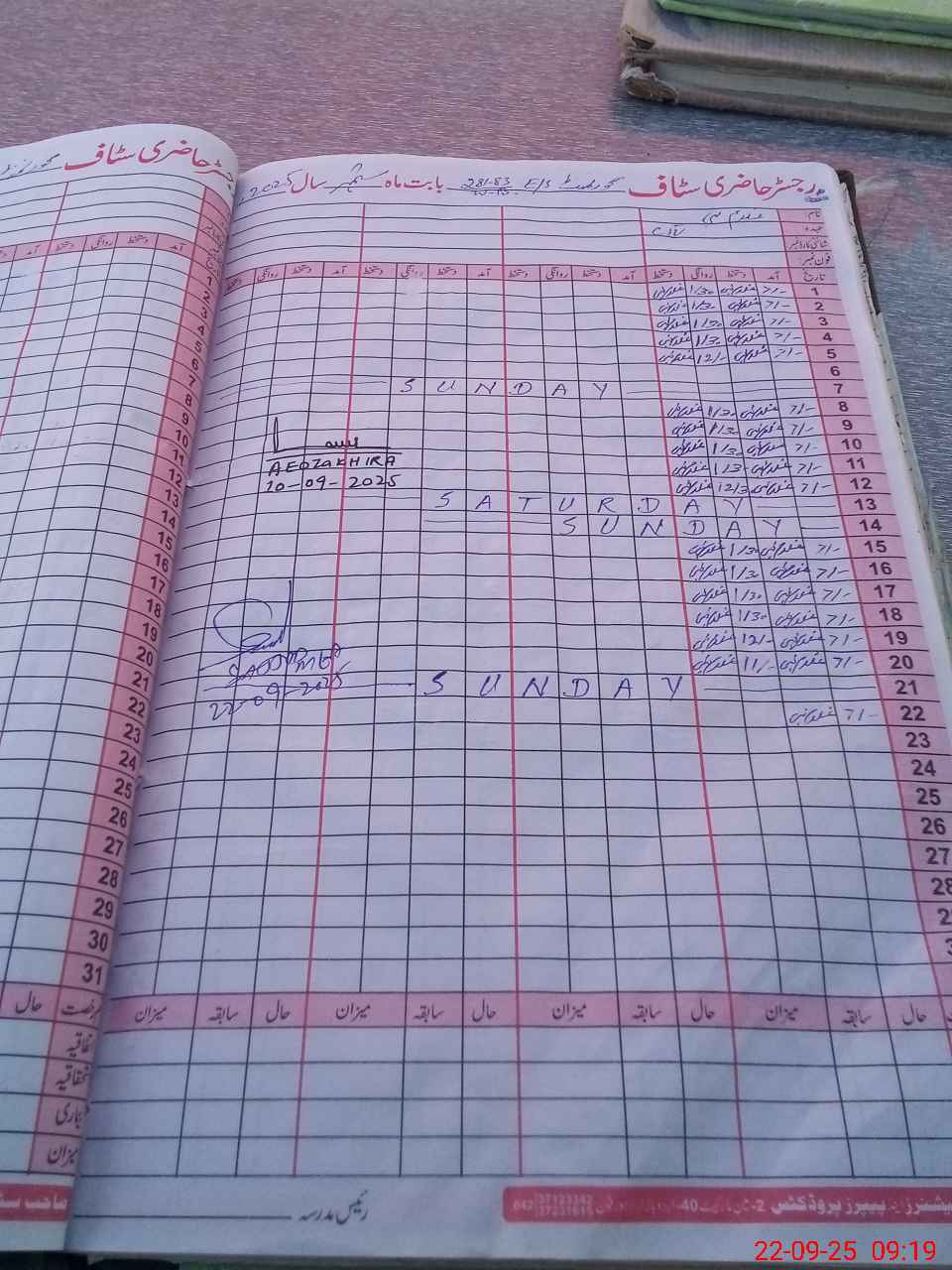 | CNIC | Full Name | Designation | R/C | Absence During Last Calender Month |