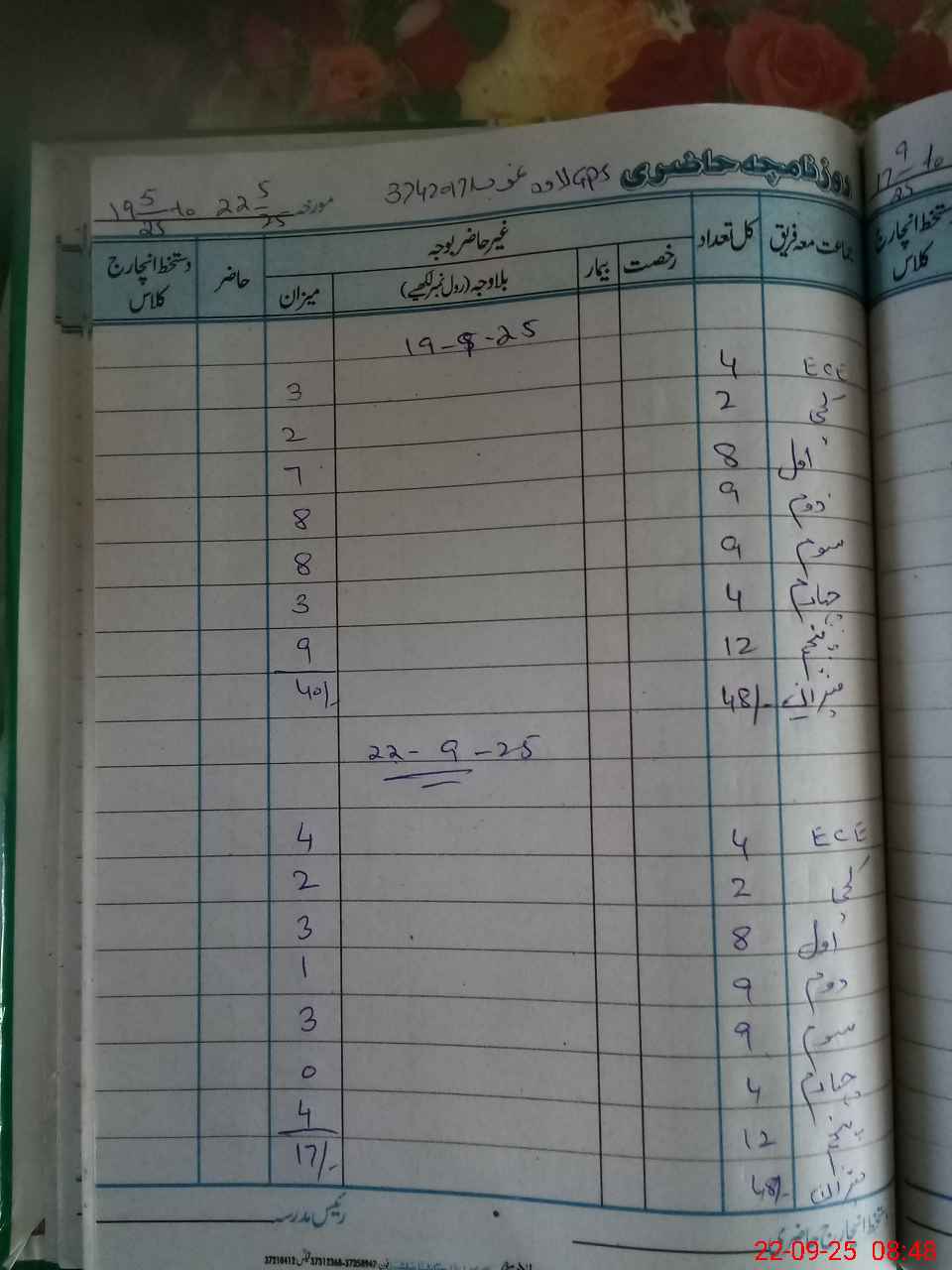 | CNIC | Full Name | Designation | R/C | Absence During Last Calender Month |