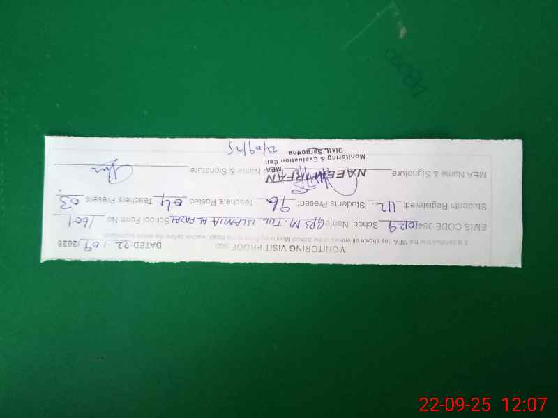 | EMIS Code: 38410129 | Name of School: GPS MADRISA TUL ISLAMIA AL-FAZAL TOWN BHALWAL | |||