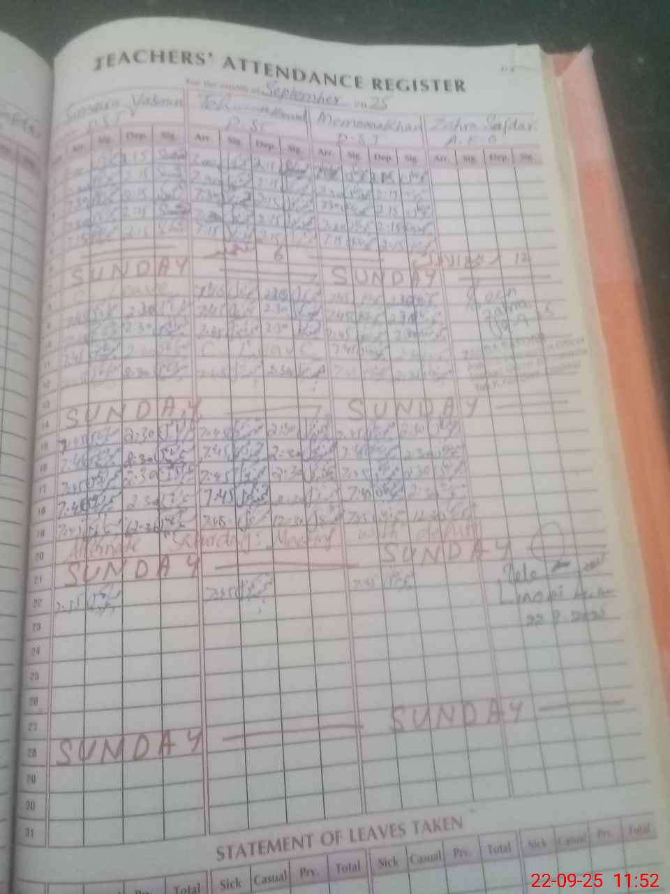 | Monitoring Date: 22-09-2025 | Start Time: 22-09-2025 11:37 AM | End Time: 22-09-2025 11:55 AM | Name of MEA: Li**** Al**** Kh**** | |