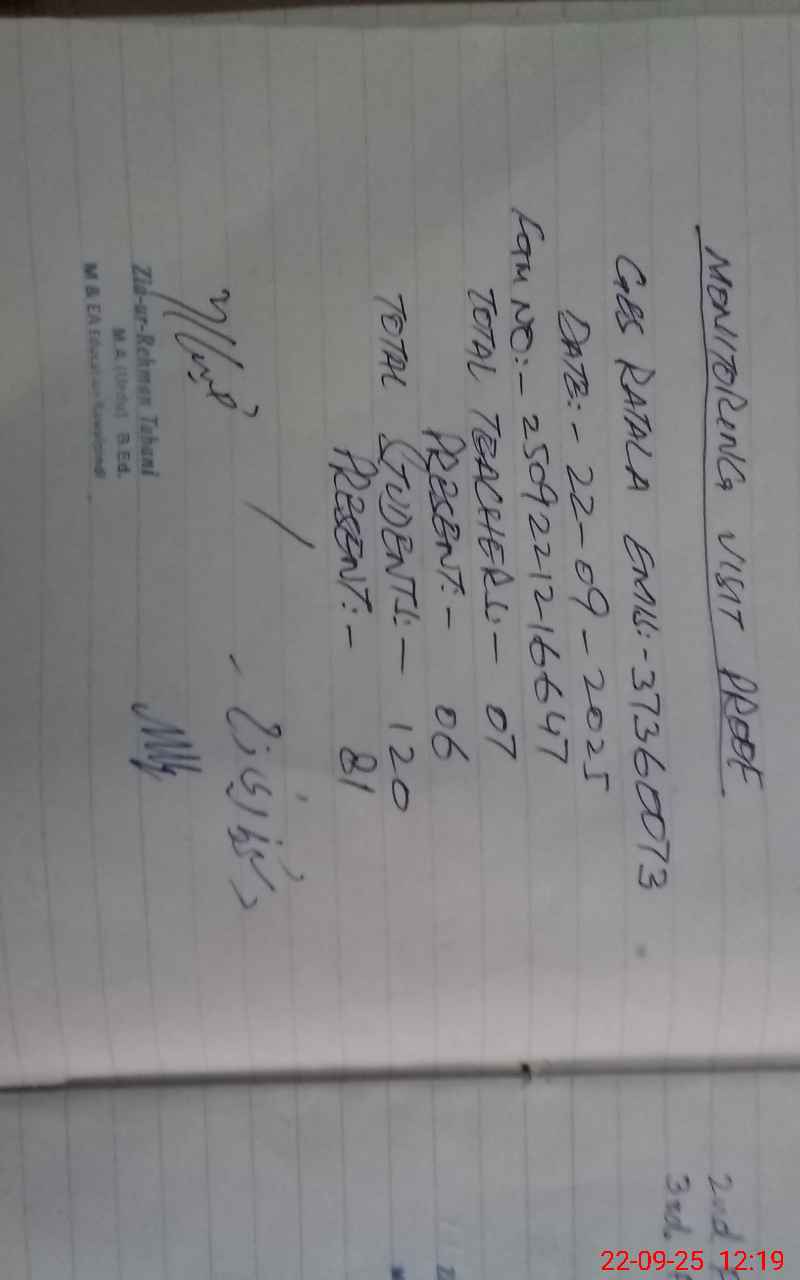 | Monitoring Date: 22-09-2025 | Start Time: 22-09-2025 11:32 AM | End Time: 22-09-2025 12:20 PM | Name of MEA: ZI**** URRE**** | |