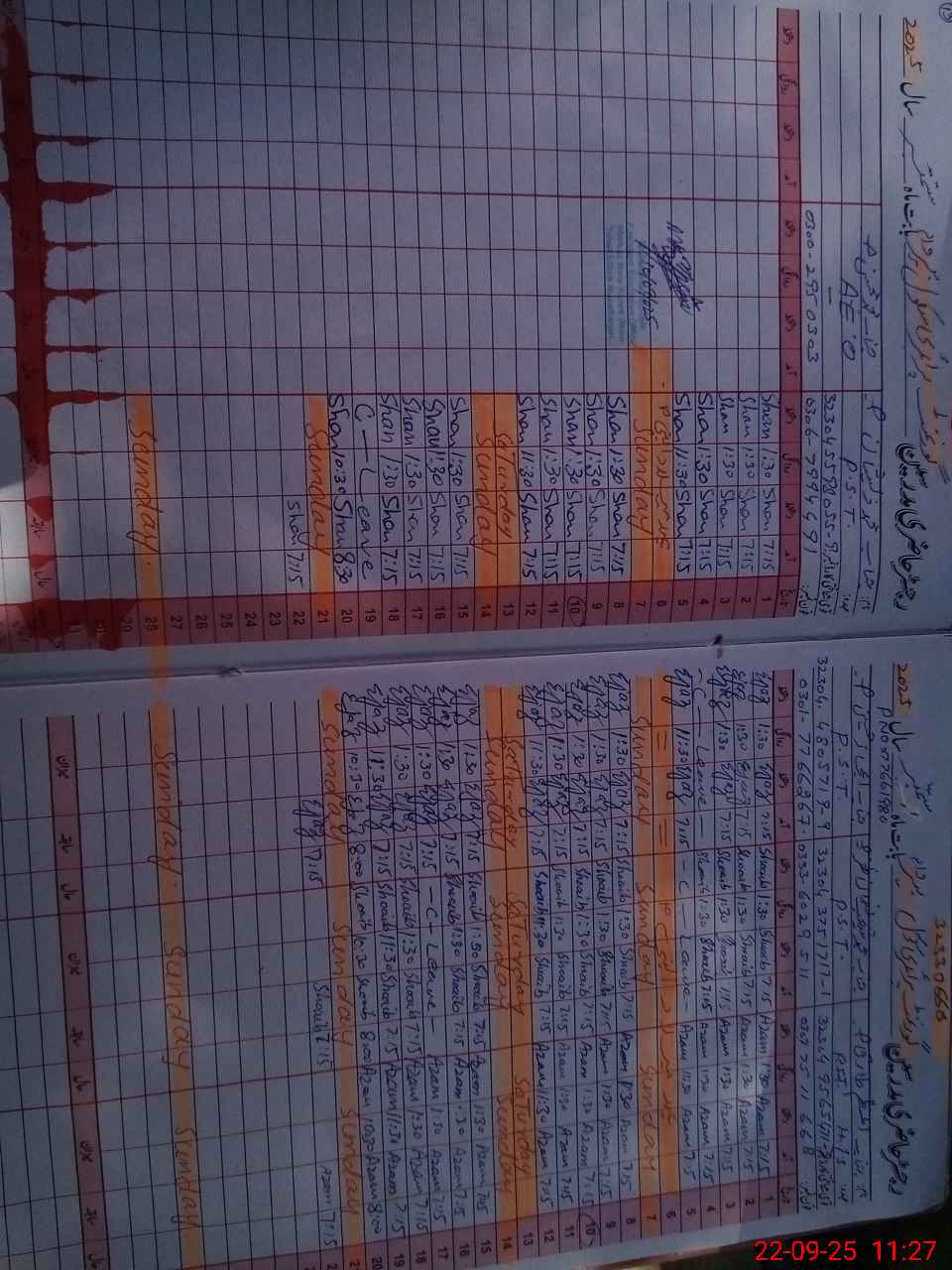 | CNIC | Full Name | Designation | R/C | Absence During Last Calender Month |