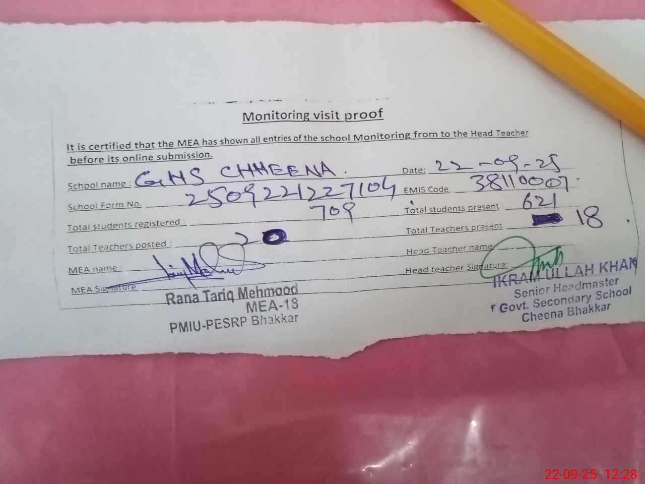| Certified that this School was Inspected by the Undersigned MEA/DMO Today and the Information Stated Above is as Per Record. | |||||