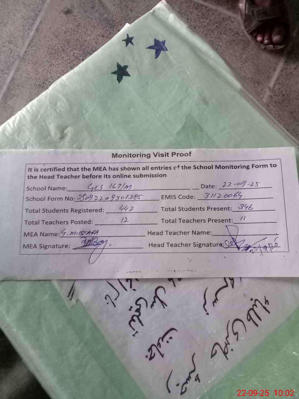 | EMIS Code: 31120064 | Name of School: GES CHAK 167/M | |||