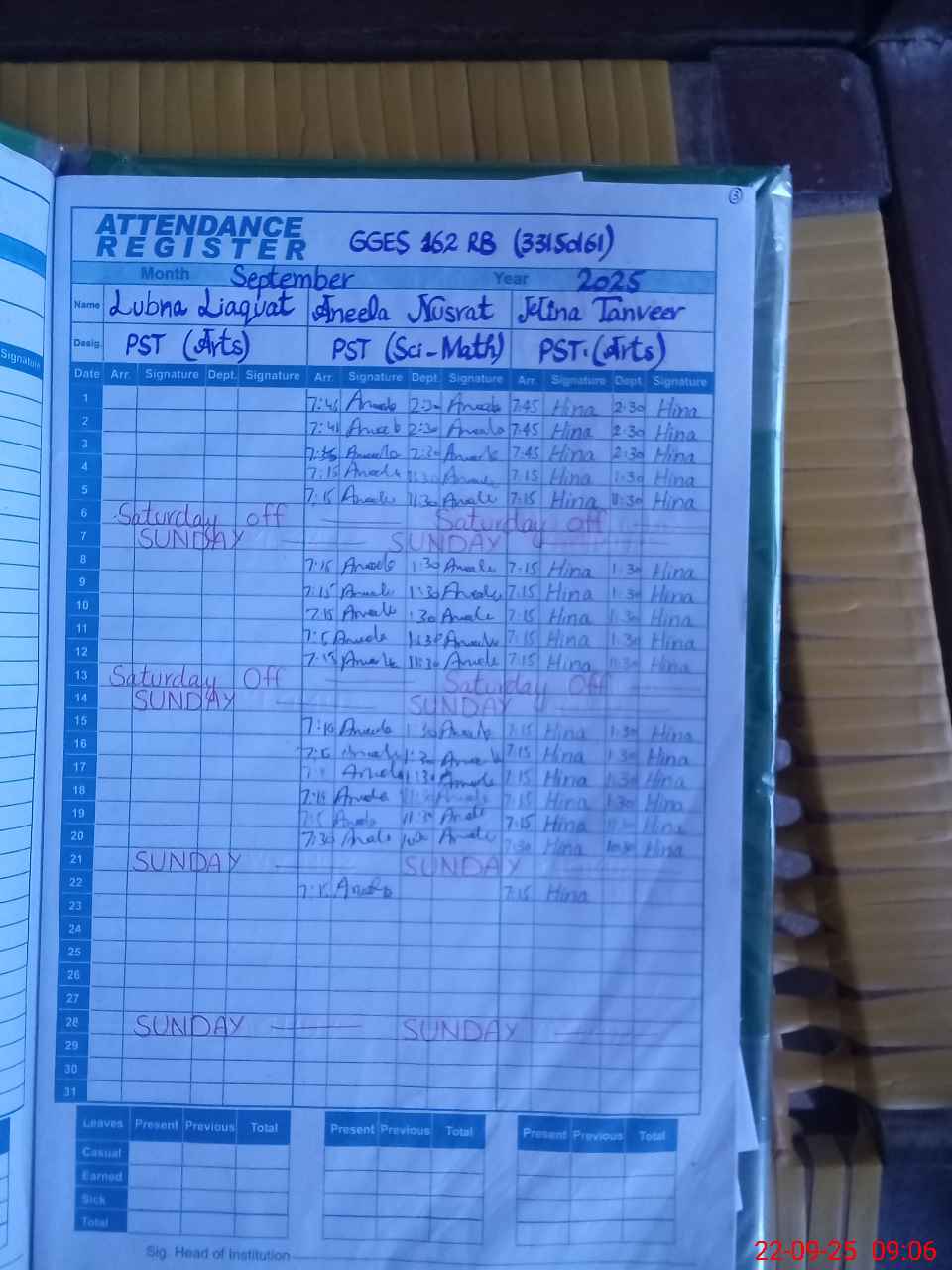 | Leave | Duty | Absent | Maternity | Medical | Ex- Pak |