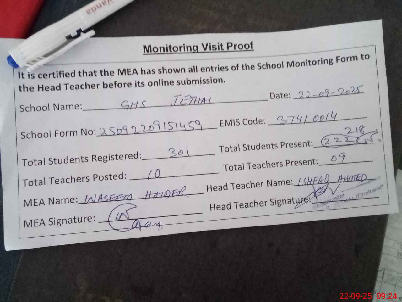 | EMIS Code: 37410014 | Name of School: GHS JETHAL CHAKWAL | |||