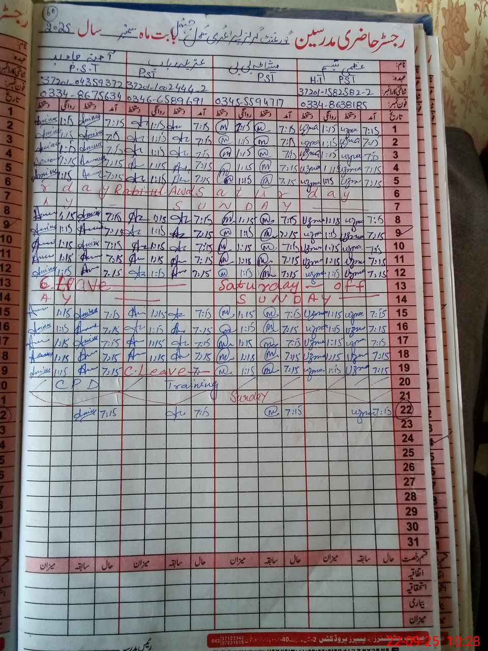 | CNIC | Full Name | Designation | R/C | Absence During Last Calender Month |