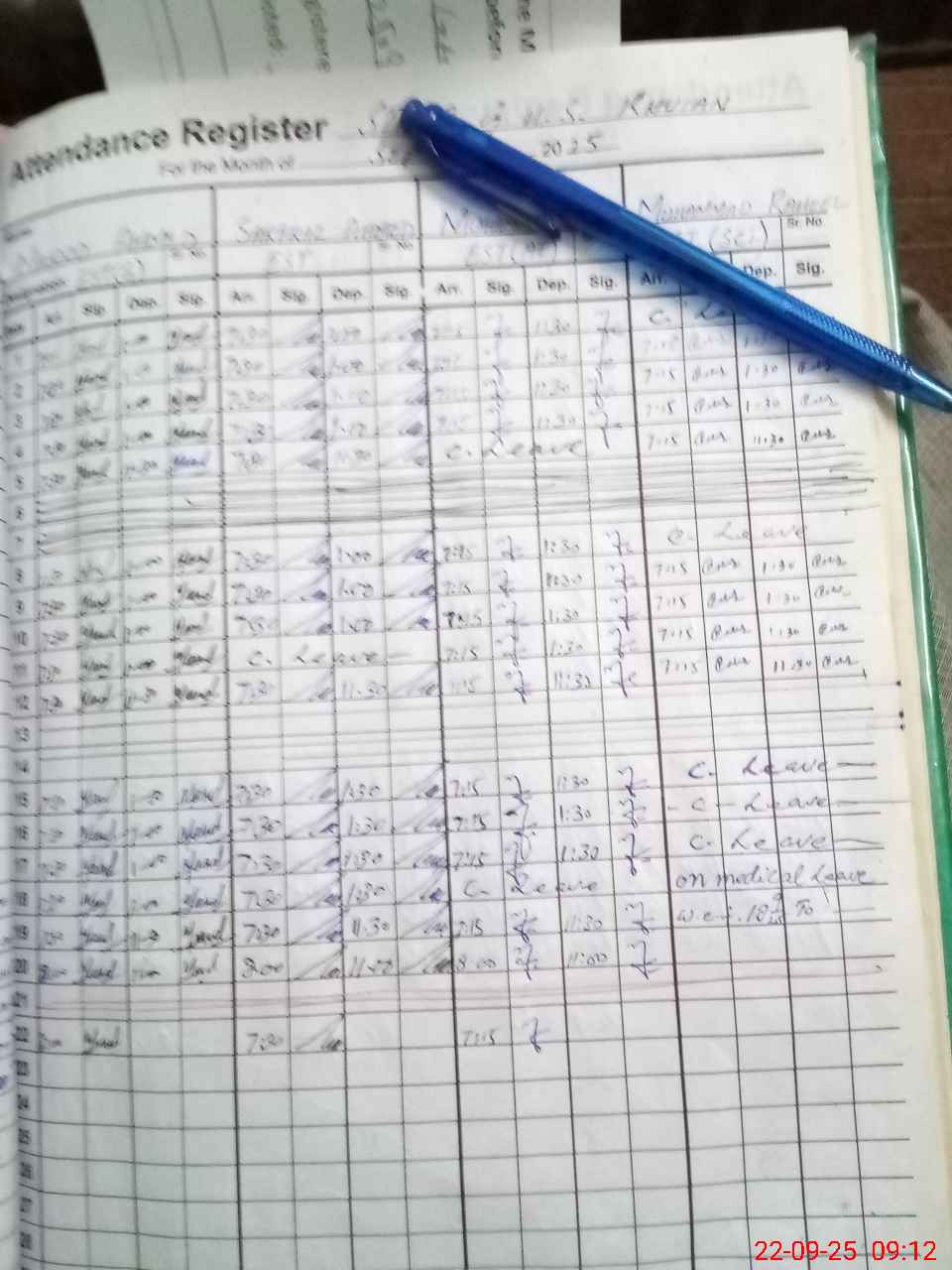 | CNIC | Full Name | Designation | R/C | Absence during last cal. month |