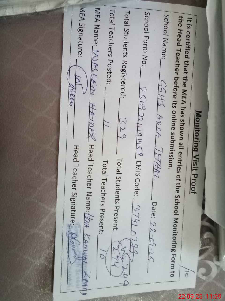 | Certified that this School was Inspected by the Undersigned MEA/DMO Today and the Information Stated Above is as Per Record. | |||||