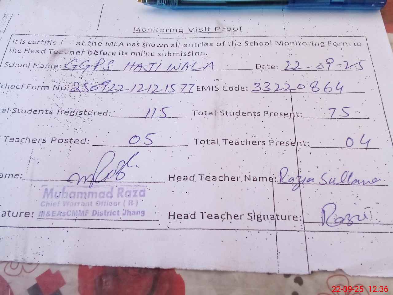 | EMIS Code: 33220864 | Name of School: GGPS HAJI WALA | |||