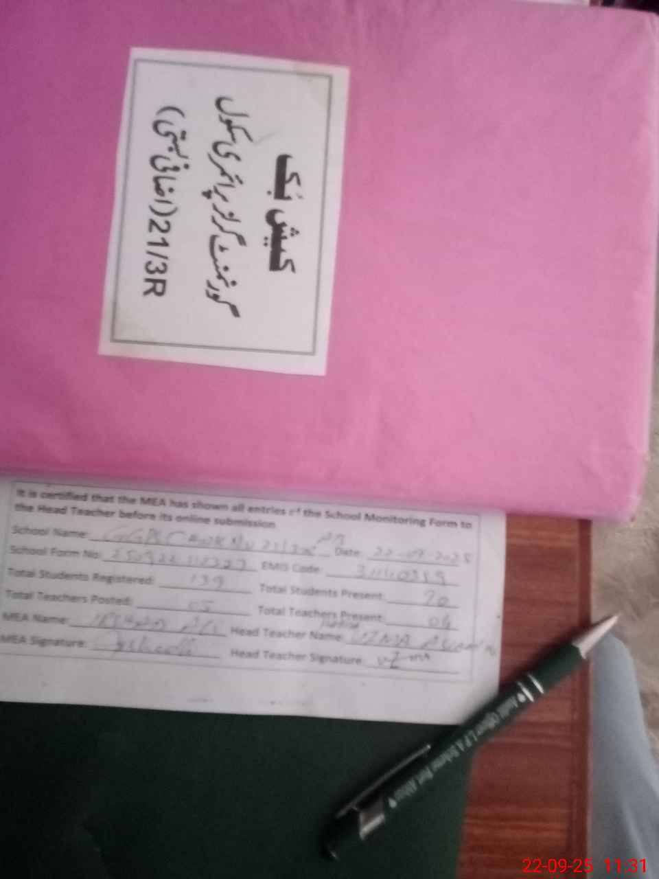 | Attendance Register | Head Teacher | MEA with School | Visit Proof |