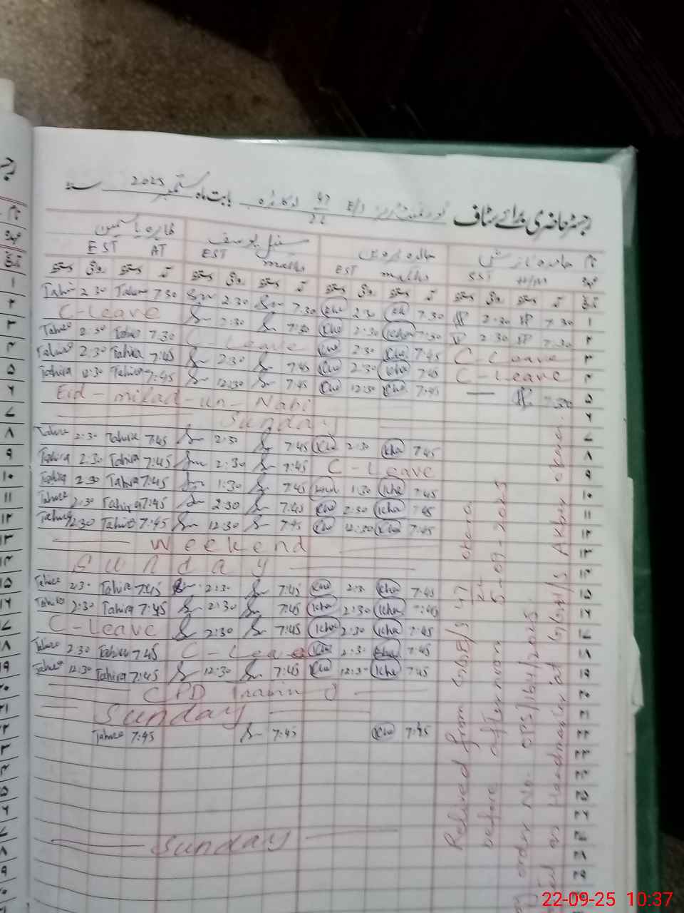 | Leave | Duty | Absent | Maternity | Medical | Ex- Pak |