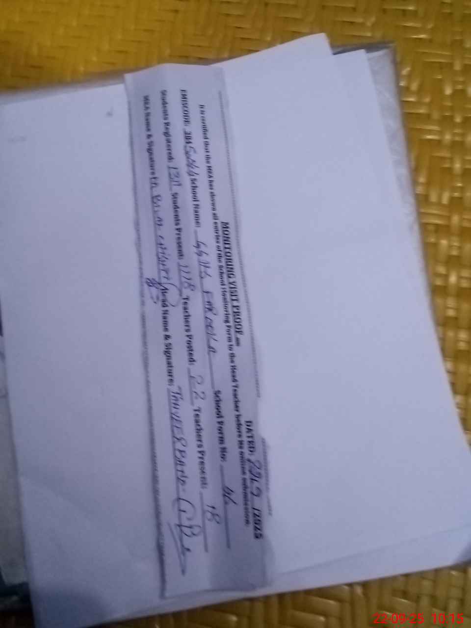 | Monitoring Date: 22-09-2025 | Start Time: 22-09-2025 09:34 AM | End Time: 22-09-2025 10:18 AM | Name of MEA: MU**** BI**** CH**** | |