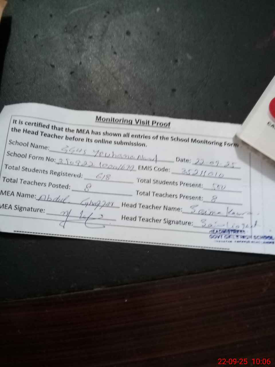 | Certified that this School was Inspected by the Undersigned MEA/DMO Today and the Information Stated Above is as Per Record. | |||||