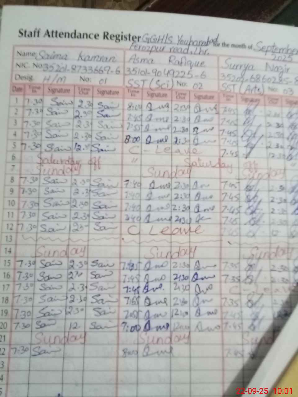 | EMIS Code: 35211010 | Name of School: GGHS YOUHANAABAD FEROZPUR ROAD | |||