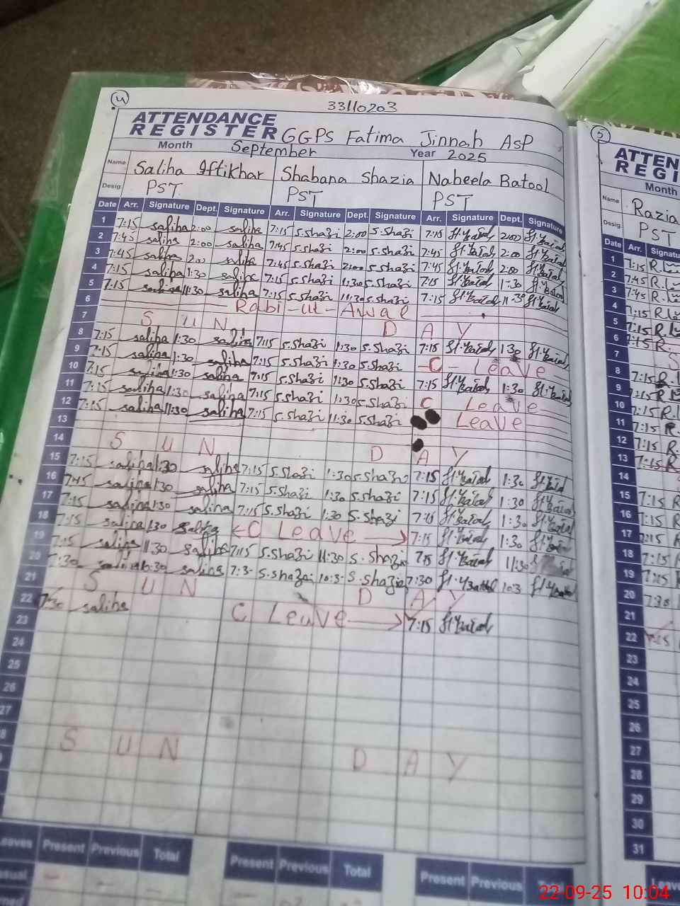 | Leave | Duty | Absent | Maternity | Medical | Ex- Pak |