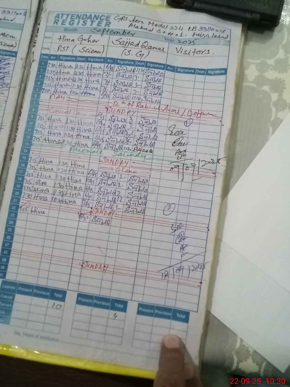 | CNIC | Full Name | Designation | R/C | Absence During Last Calender Month |