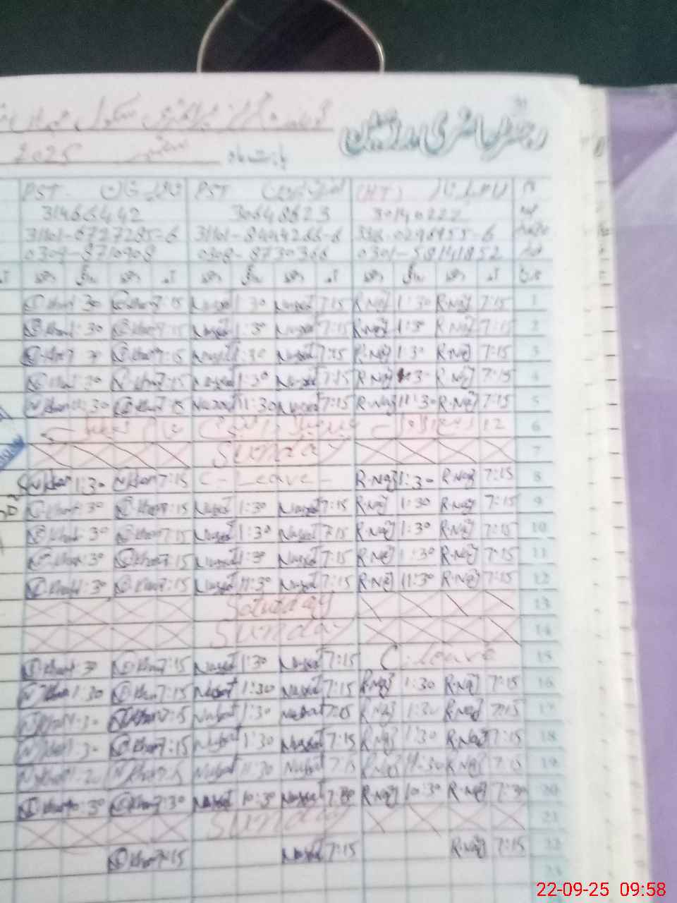 | Leave | Duty | Absent | Maternity | Medical | Ex- Pak |